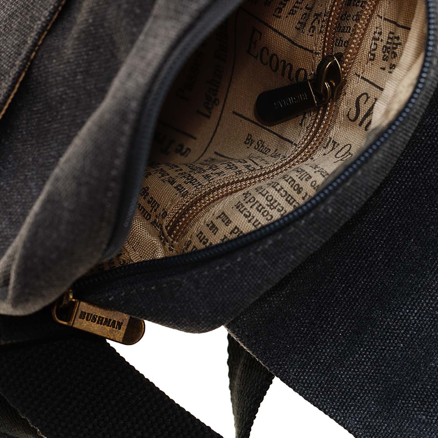 Bushmen love bags made of sturdy canvas. No wonder – they can withstand a lot, hold their shape well, are easy to maintain. They are simply such outdoor staples. Take the AZIBO bag to the countryside, but also to the city. The aviation motif on the front gives a luxurious impression, and when you add the all-over newspaper print inside, a snap closure and three inner pockets (main and inner zipped), you‘ll have a fresh piece that you can take anywhere.