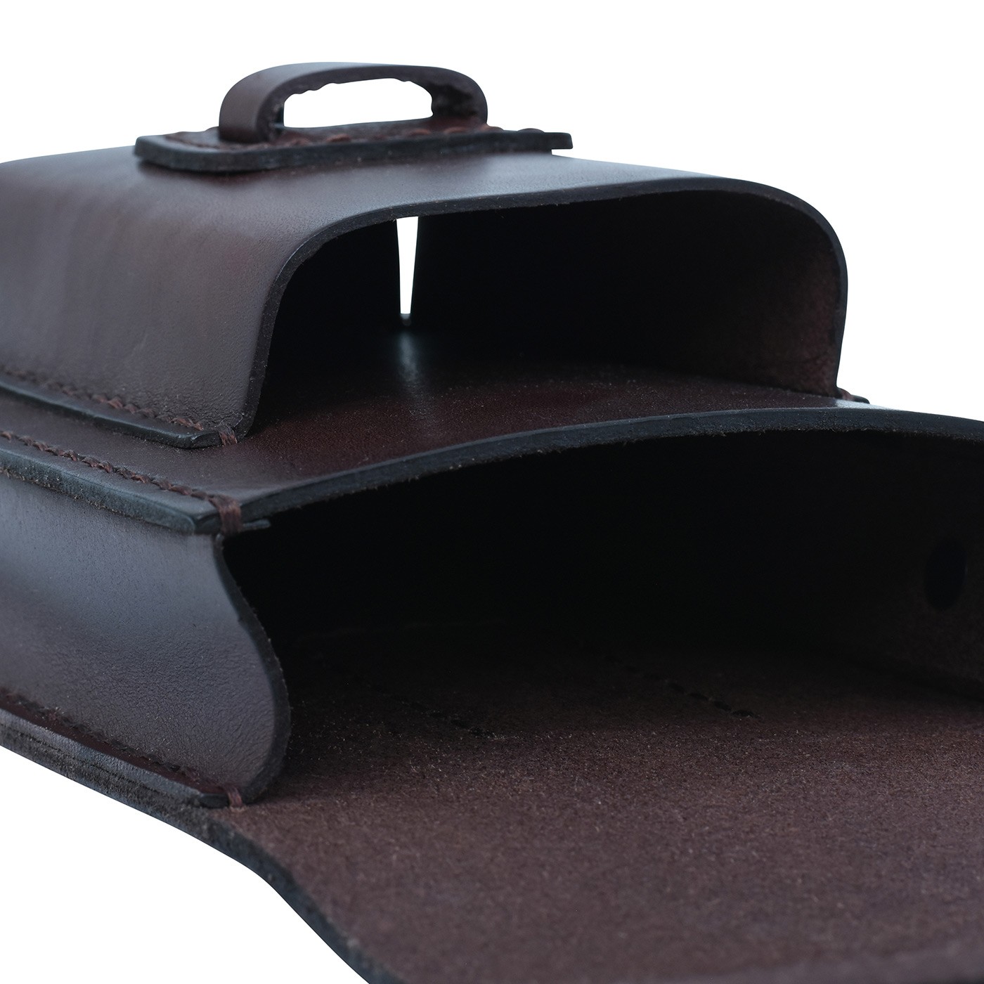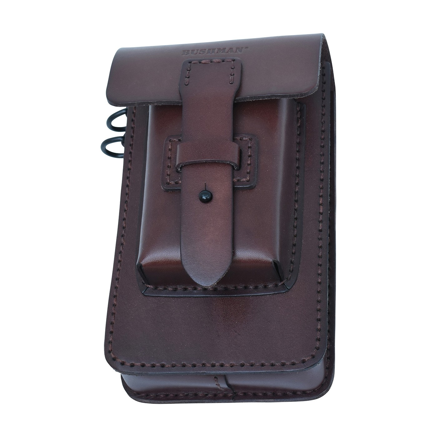 TONGARIRO small leather case made of cowhide leather for your phone and small items. It has two pockets – a larger main pocket and a smaller front pocket. Metal stud fastening prevents accidental opening. Metal clip on the back for attaching to a belt, BUSHMAN logo embossed on the flap at the front. Dimensions 11 × 19.5 × 8.5 cms.