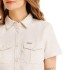 Women's all-zip (not only) expedition dress made of a blend of cotton and linen. The slim cut emphasizes the silhouette (and is also supported by a textile belt), the bamboo button fastening emphasizes the natural character of this model. There are also patch breast pockets and pockets in the side seam at hip level. Fine brand embroidery on the back and brand print on the inner saddle of the back.