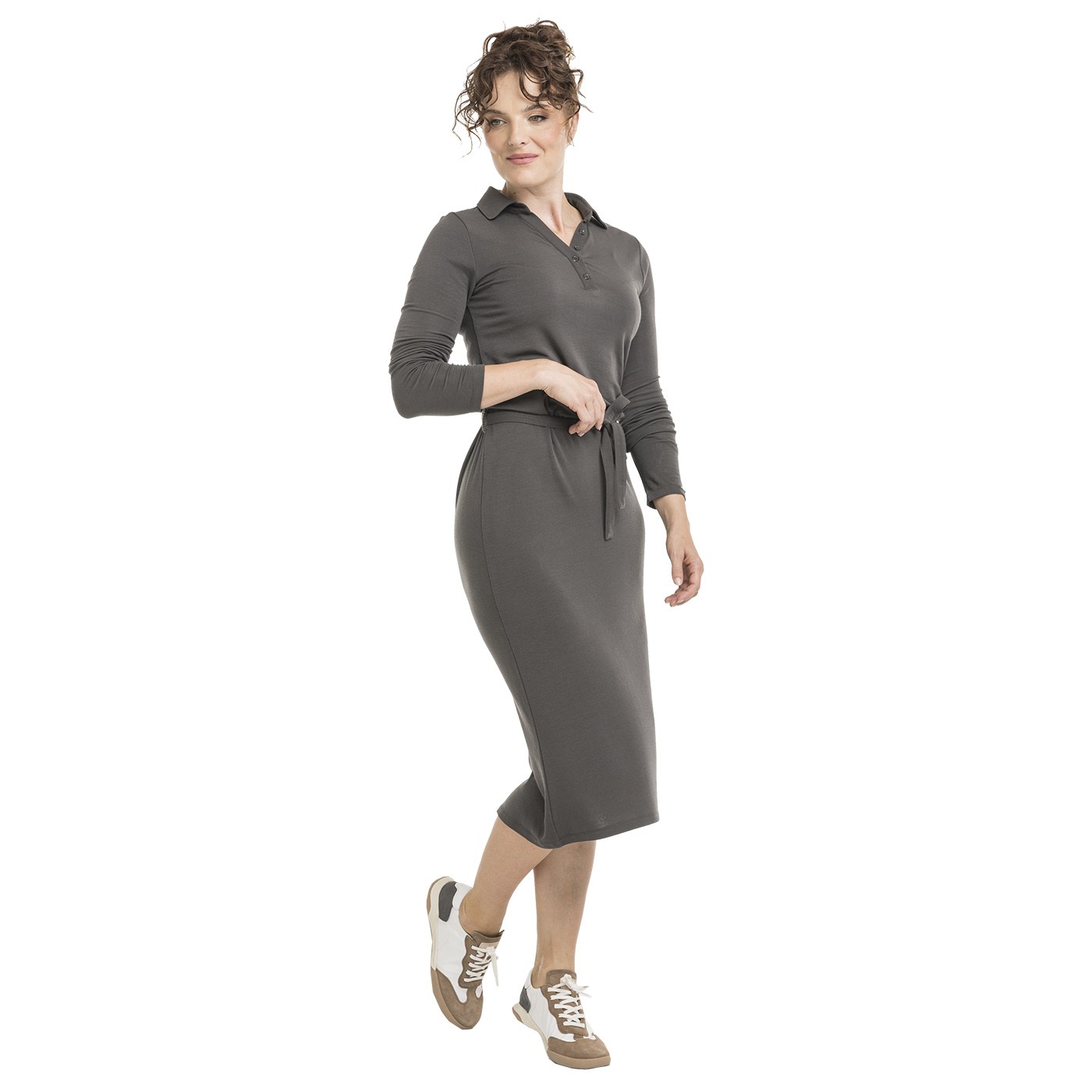 A dress that will make your silhouette stand out. The semi-open ribbed knit (1x1) with collar and tie belt looks casually elegant - and thanks to the combination of lyocell (TENCEL™) (76%), wool (19%) and elastane (5%), you'll fall in love with them at first wear. It's flexible, soft, pleasantly warm and at the same time light, so it won't restrict you even when worn all day. Throw on sneakers or leather boots and you have a reliable outfit for colder days.