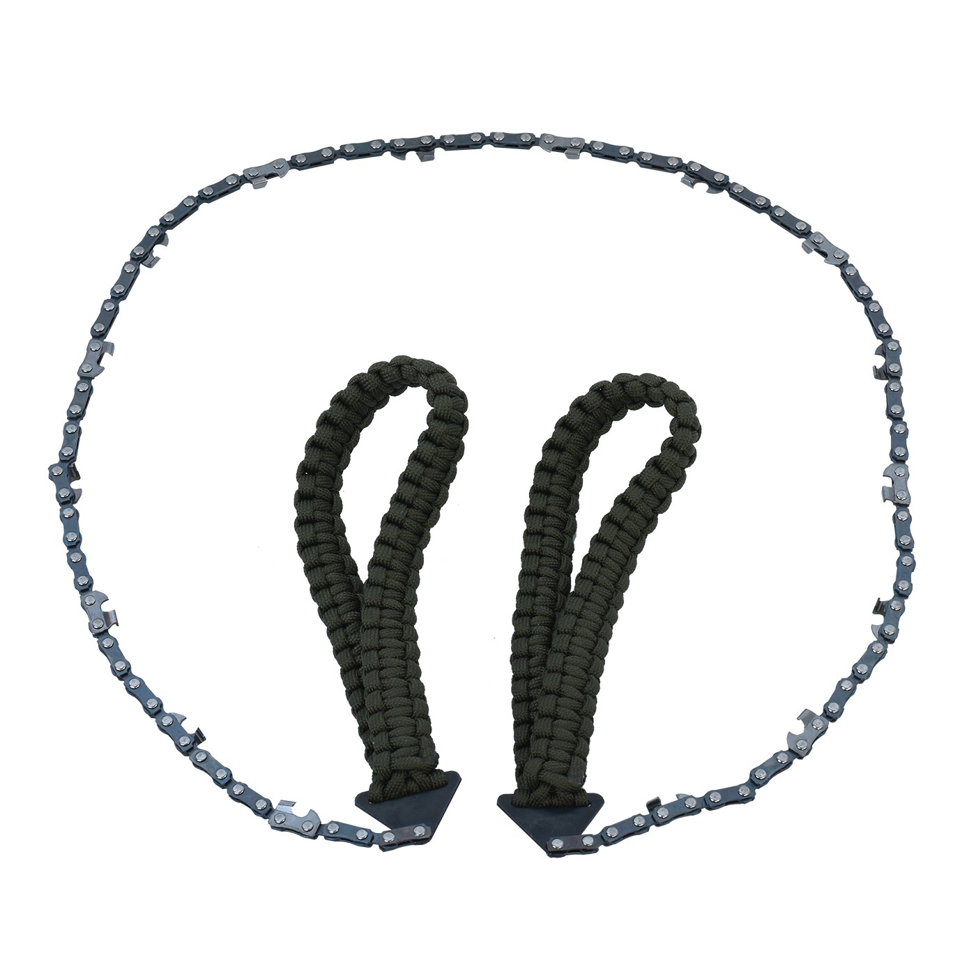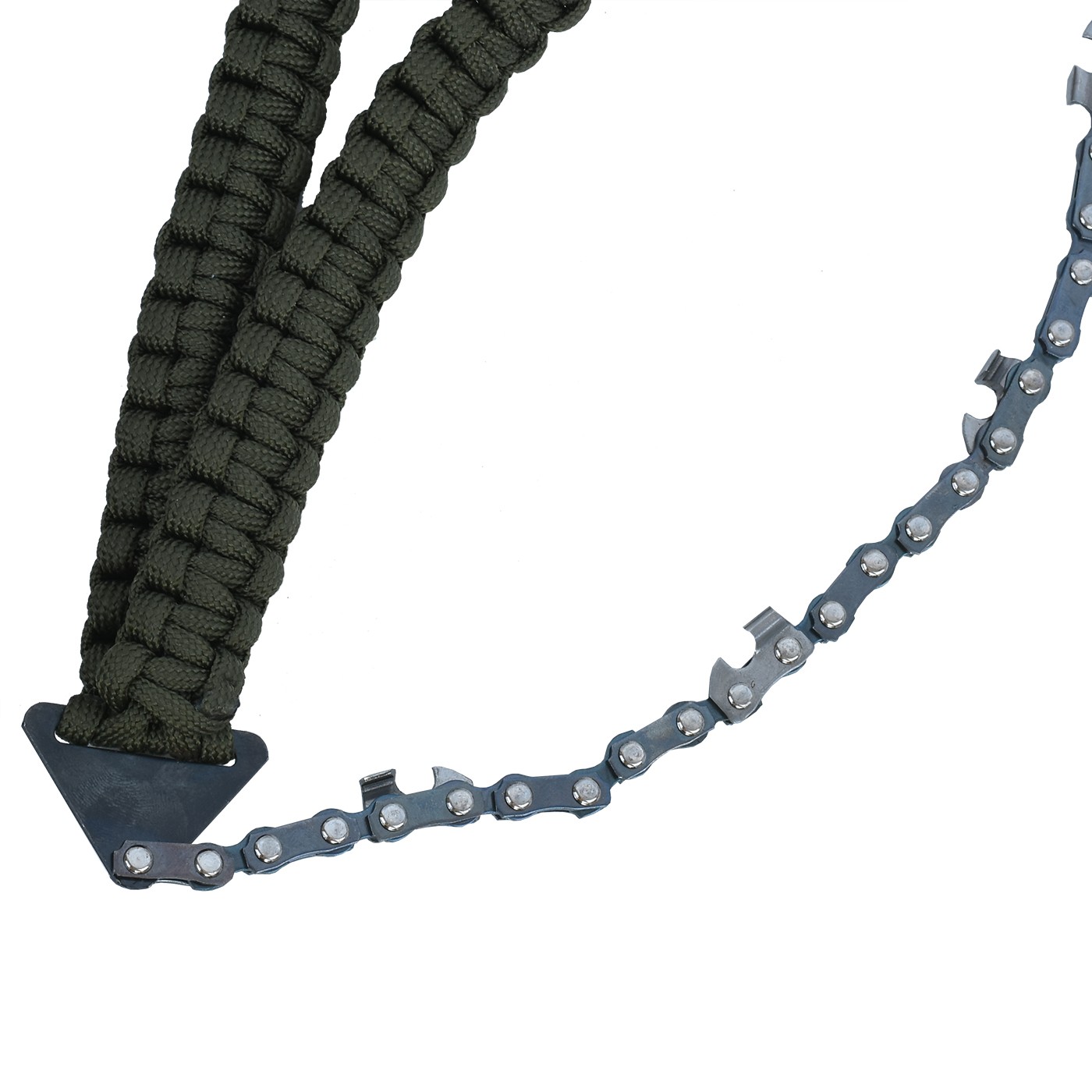 Our handsaw made of heat-treated high-carbon steel has counter-rotating teeth so that you can cut smoothly in both directions, and weighs only 180g. We chose a braided paracord (parachute cord) with a diameter of 3mm as the material for the handle. If you need it, each handle will provide you with 3 meters of this cord in an emergency.