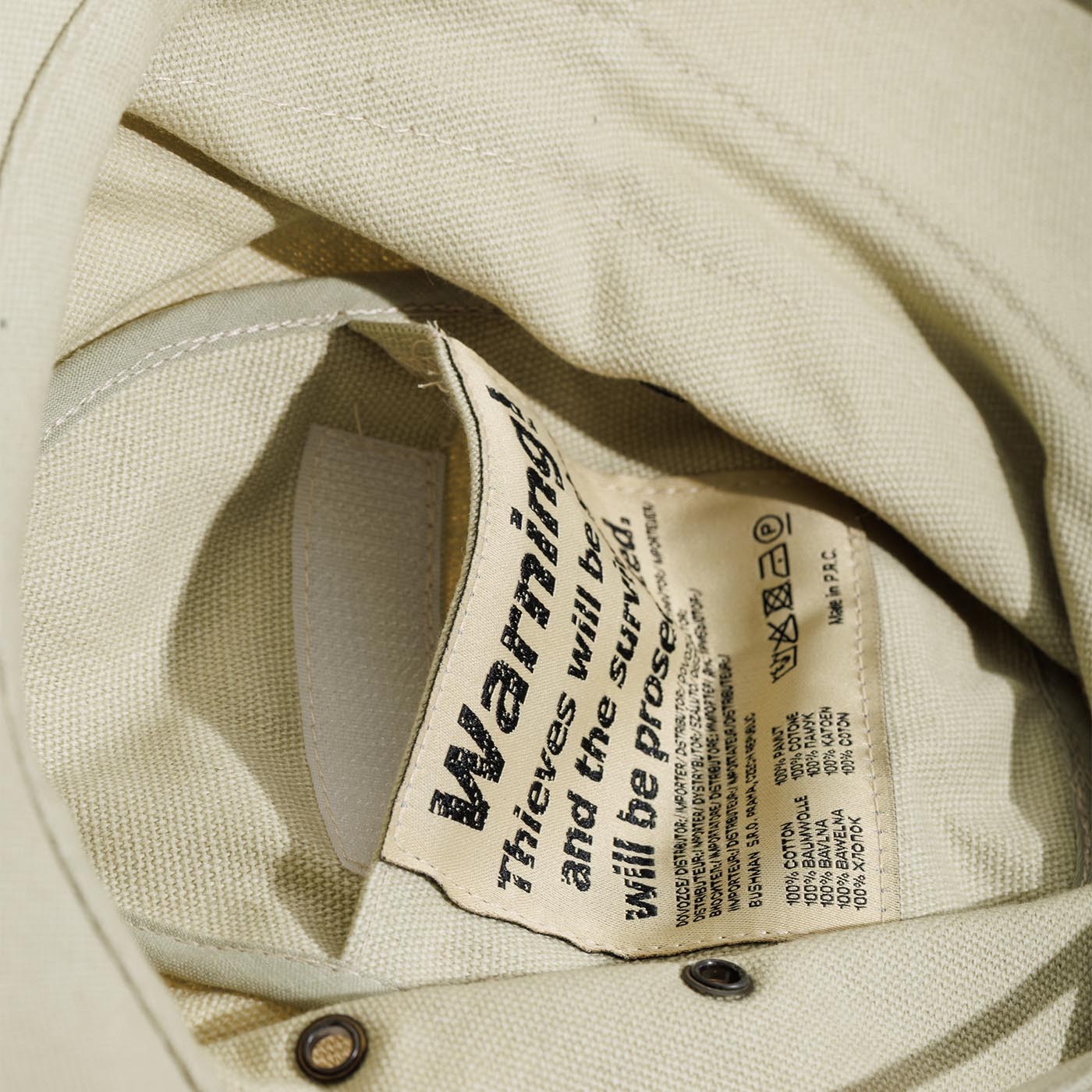 This hat is thoroughly inspired by traveling and you will remember by it the simple laws of the Wild West. We sewed the FELLOW hat from heavy cotton canvas, the brim is reinforced with stitching and you can crumple it and put into your backpack or pocket. Four metal ventilation eyelets ensure that your head doesn't overheat, and thanks to the drawstring under the brim, your hat won't fly even while the galloping.