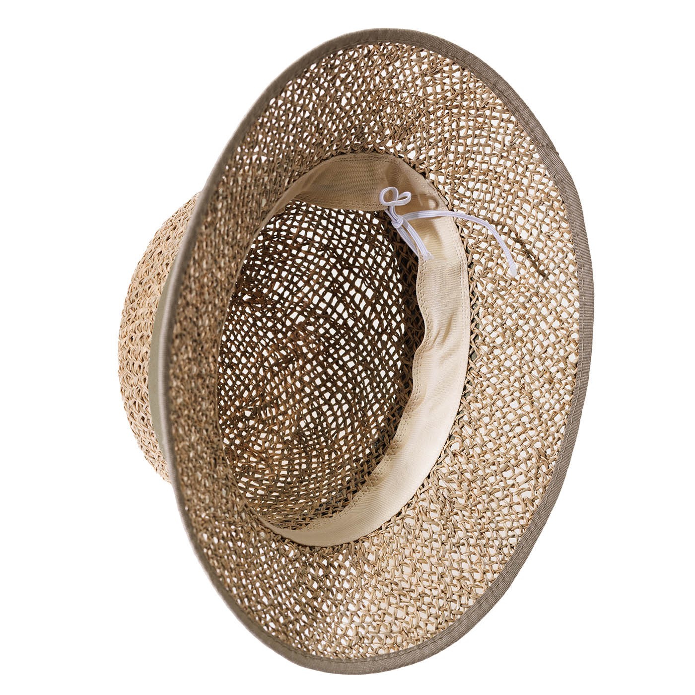 Our ISABEL women's hat features a narrower stiff brim and an airy, open weave that provides excellent ventilation. It‘s adorned with a khaki ribbon featuring a metal BUSHMAN logo, and the lower edge of the brim is trimmed with a matching ribbon.