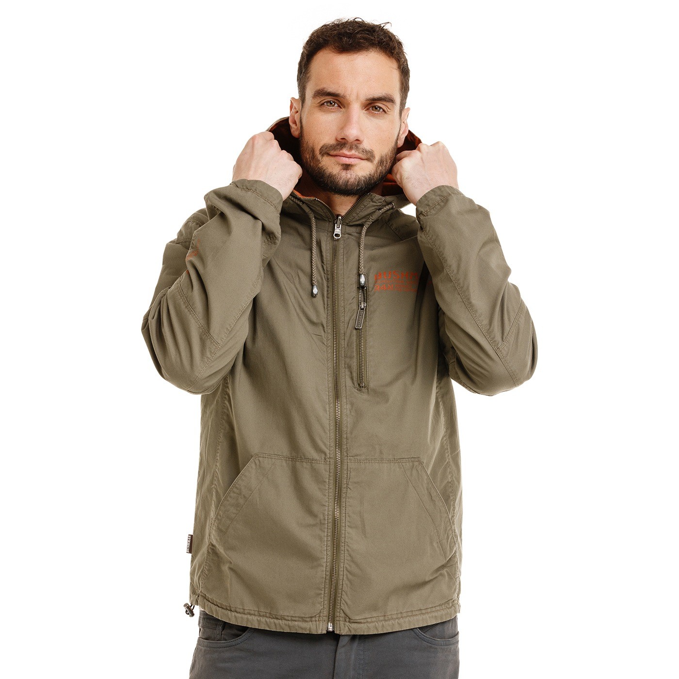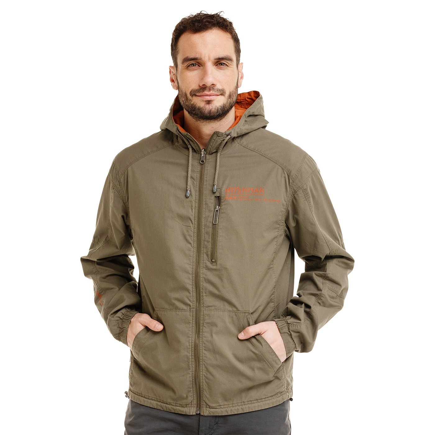 This full-length jacket (metal YKK zipper) is for all guys who want variability and practicality in one. The double-sided design gives you the opportunity to change the style - the dark green side looks inconspicuous and off-road, the brick red side with an aviation print is more distinctive and underlines the Bushman style. A hood with a drawstring and the elastic ends of the bottom hem and sleeves increases wearing comfort and protects against wind. Bottom and top zippered pockets, along with an inner pocket, provide plenty of space for small items. The AERIAL II is great for everyday wear as well as for outdoor activities where durability and flexibility are needed – and the quality design is just a minor bonus.