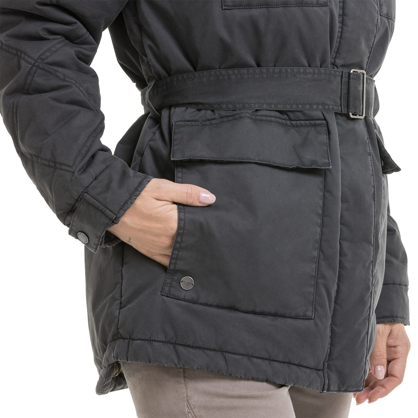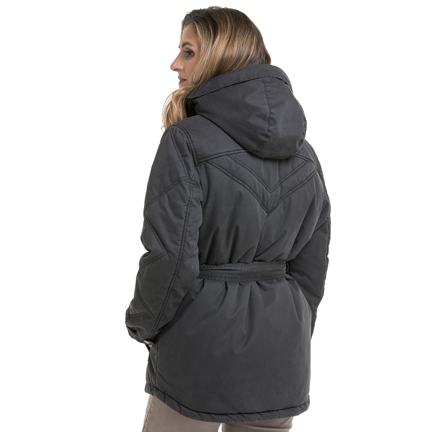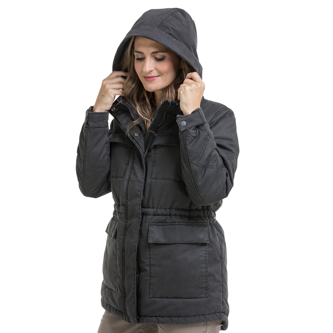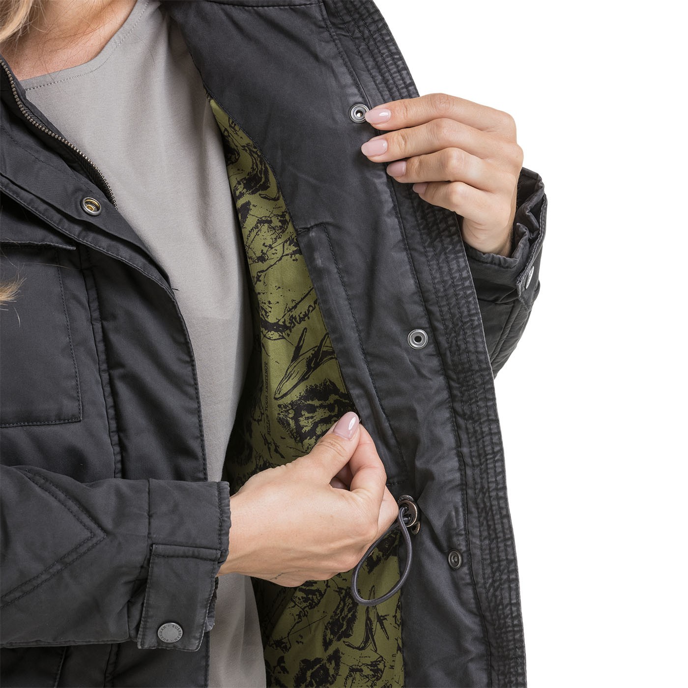 Stylish, comfortable and warm for winter. The MALIKKA jacket will keep you warm, even if you're not a fan of big down jackets. Thanks to the coating on the reverse side, the material is stronger and more durable, but at the same time it maintains a texture that is pleasant to the touch. A practical detail is the placket with prints covering the zip. Decorative stitching on the back in the shape of the iconic BUSHMAN 'Vs' gives the jacket a unique look. Practical pockets, regulation of the waist (belt) and sleeves (prints) and a removable hood make it a great companion for trips around the city and trips outside of civilization. Specification: Composition 70% cotton, 30% polyester, Weight: 156 g/m².