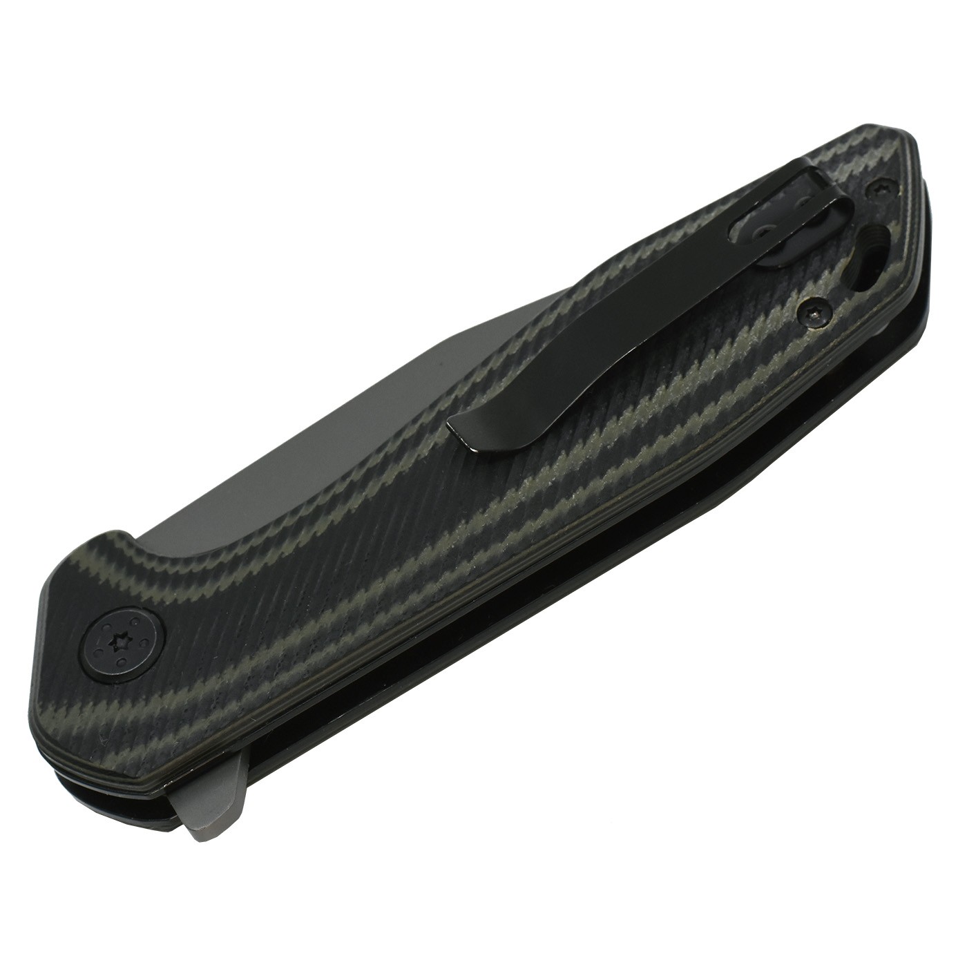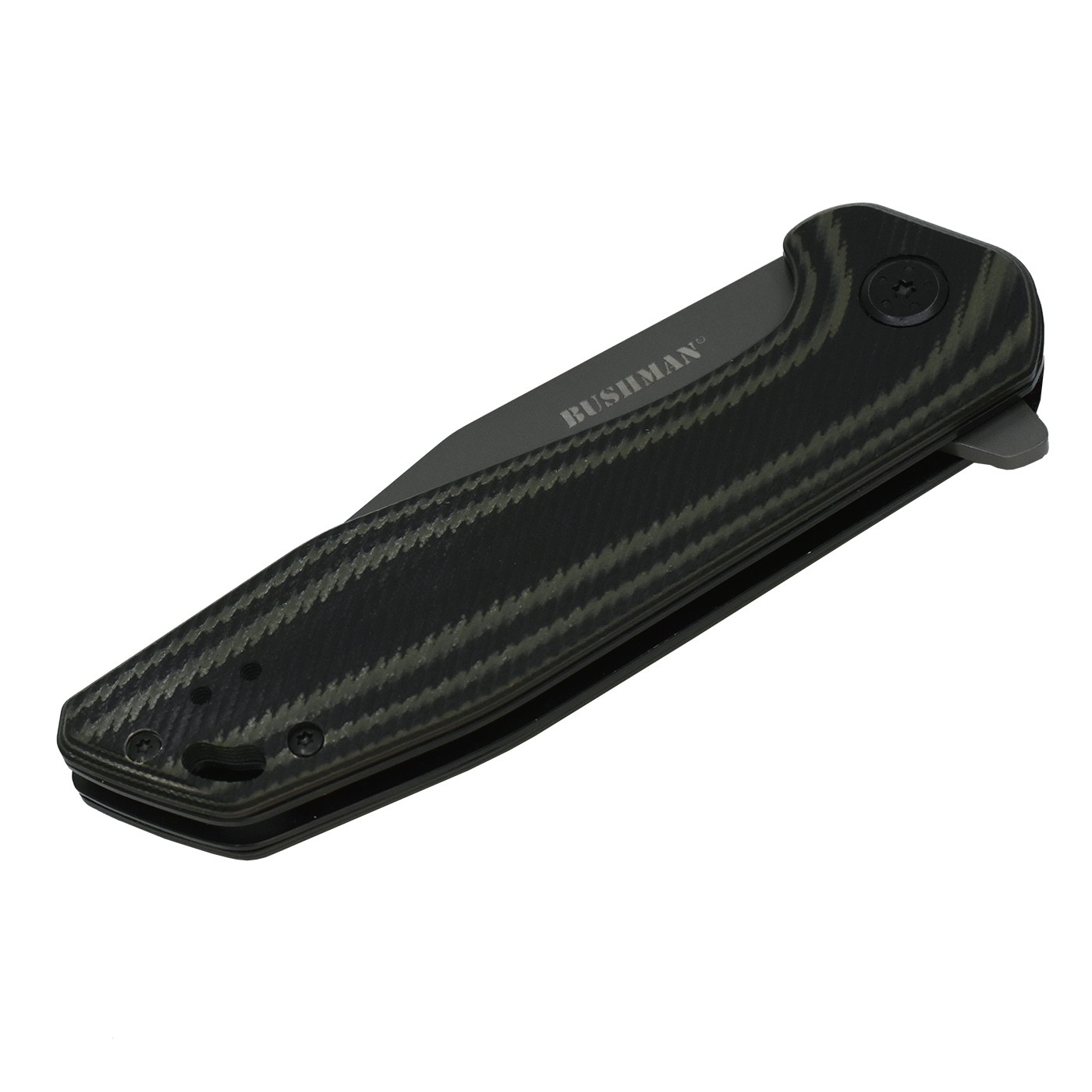 The G10 handle can withstand almost anything. This resin-bonded laminated fibreglass is also used for gun stocks and is known for its extreme durability — it can withstand impacts, moisture and everyday wear in your pocket or backpack. Thanks to the use of coloured layers, you will also have a truly original piece in your hand. We have laser-engraved a subtle BUSHMAN logo on the blade, and a practical clip ensures that you will always have your VIMBA knife at hand.