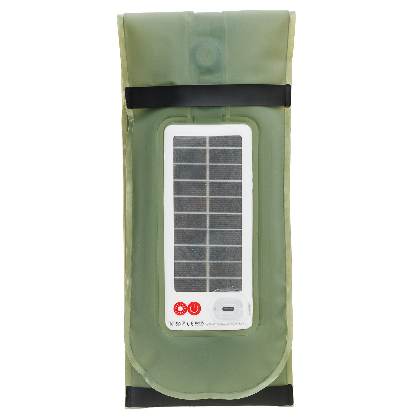 Our SOLAR light combines performance, practicality, and durability. It offers a maximum brightness of 339 lumens and allows you to choose between modes: 10% light for sleeping, 100% brightness for full visibility, or coloured light (six colours – orange, red, yellow, green, blue, and purple) plus the option of an SOS signal.
