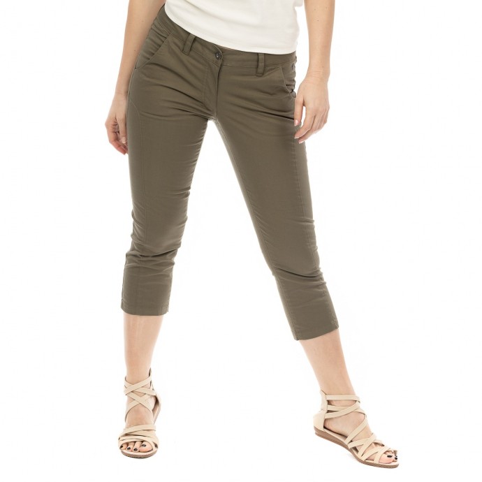 Look no further for comfortable pants for the summer. We sewed NIAGAS women's pants from cotton with a small admixture of elastane, so they will not restrict your movement and you will feel comfortable in them all day long. Thanks to the unique seams on the back, they complete your figure to perfection, the shortened, 7/8 length of the trousers adds a casual touch to them, and they are finished with a decent slit.