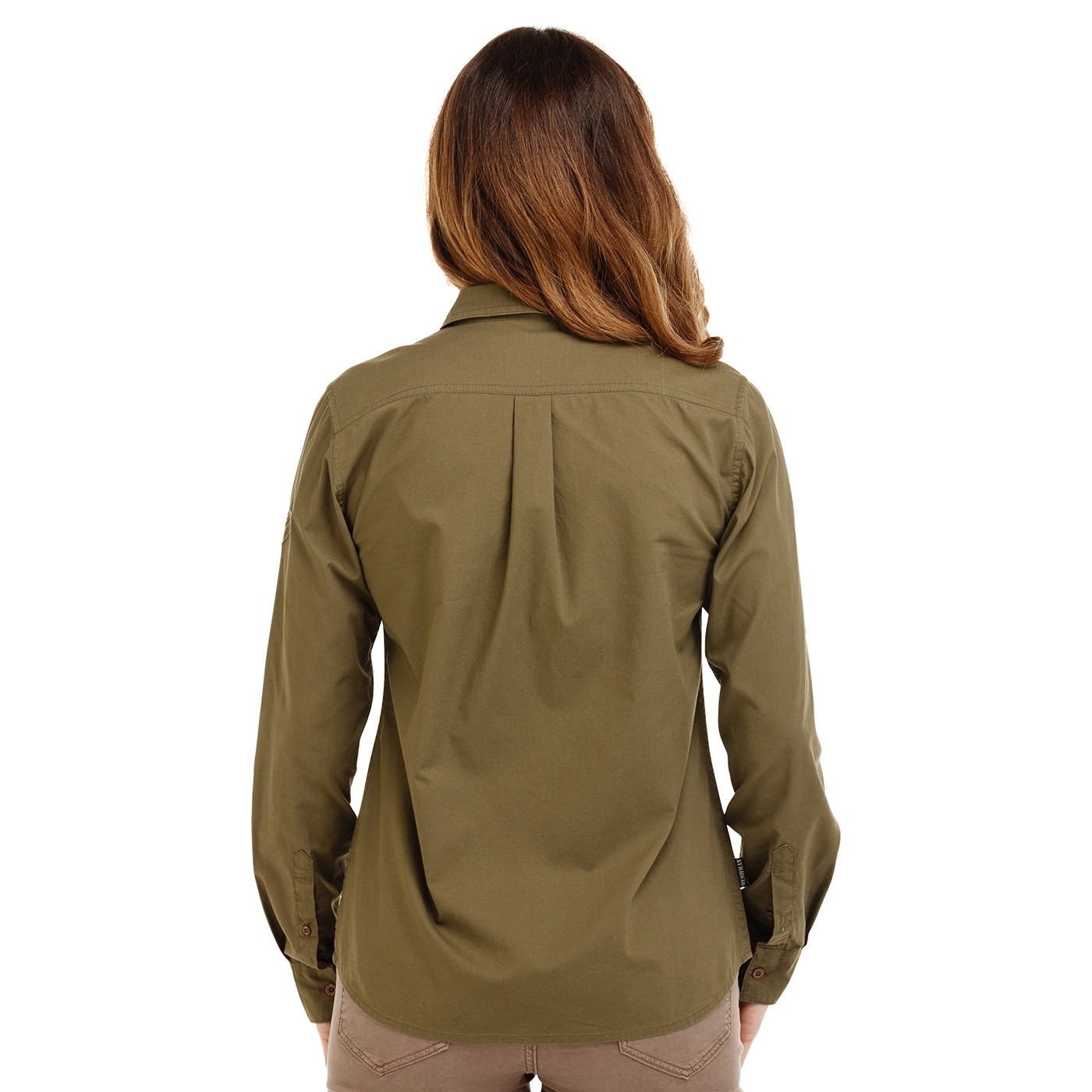NUNNA is a women's expedition shirt that combines a classic cut with practical details for everyday and outdoor wear. The lightweight cotton is comfortable and breathable, the long sleeves can be easily rolled up and secured with a button, which adds variability to the shirt. The anti-fold on the back provides freedom of movement, so the shirt fits well even during activities and can be combined with other pieces. Breast pockets, brand buttons and a delicate brand embroidery on the left sleeve add character and an authentic Bushman touch to this piece.