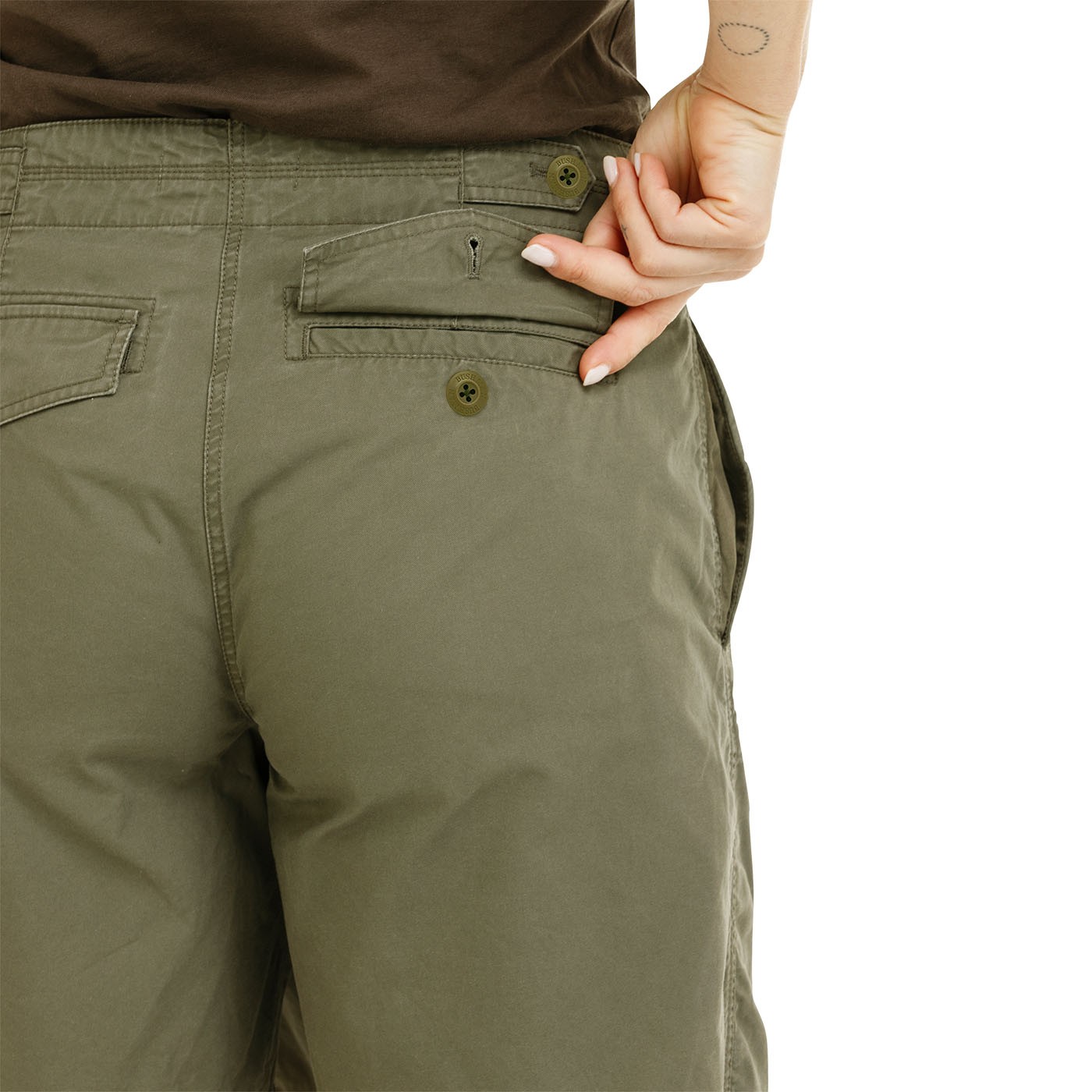 A women's short skirt that combines the comfort of shorts with the elegant look of a skirt. Cotton in a twill weave ensures strength and at the same time a pleasant flowing effect. Waist adjustment with brand buttons on the sides allows you to adjust the size. Practical side pockets and two back pockets with button flaps are complemented by a leatherette label on the right rear pocket. Delicate brand embroidery above the left front pocket highlights the brand's style.