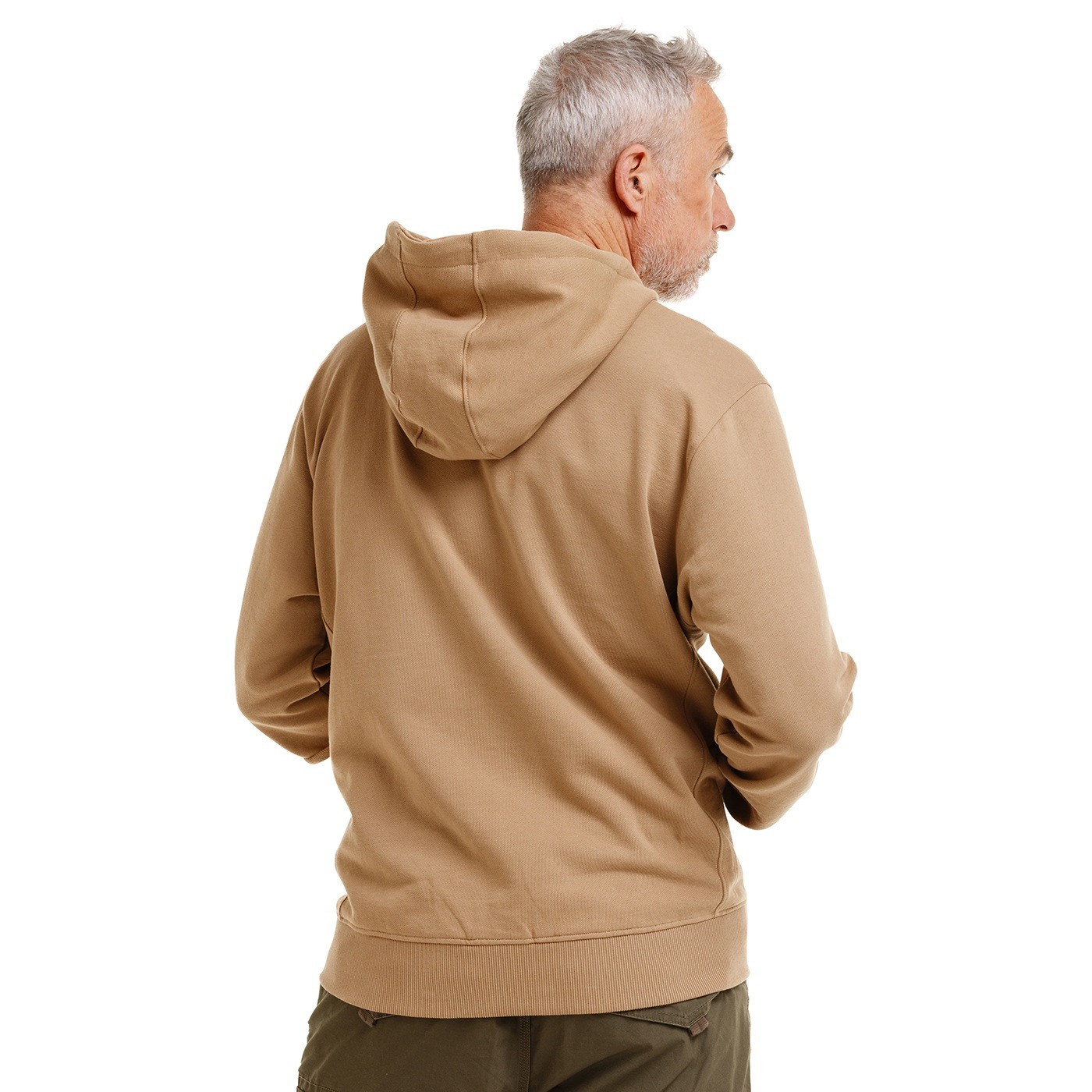 The DURONG II cotton full-zipper (metal YKK zipper) sweatshirt in cross loop fleece is sturdy, but soft and comfortable. A hood with a drawstring with metal ends adds practicality, while cuffs on the sleeves and hem complement its sturdy fit. Two front pockets and small brand embroidery on the chest only underline the overall design.