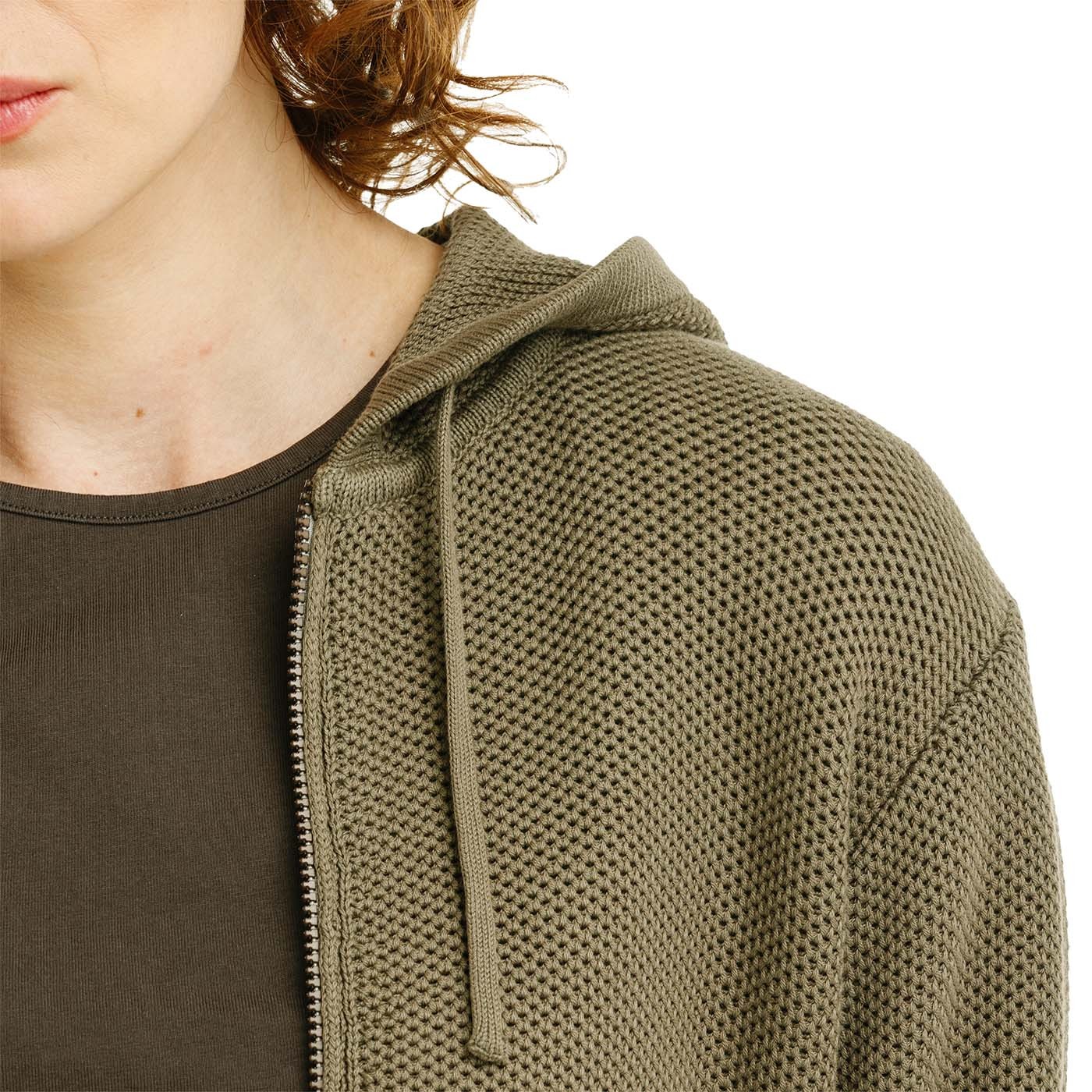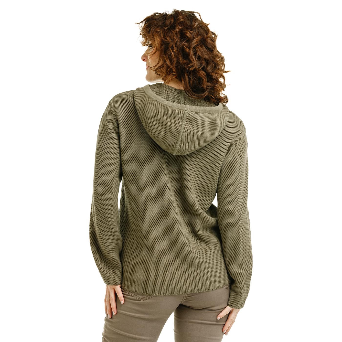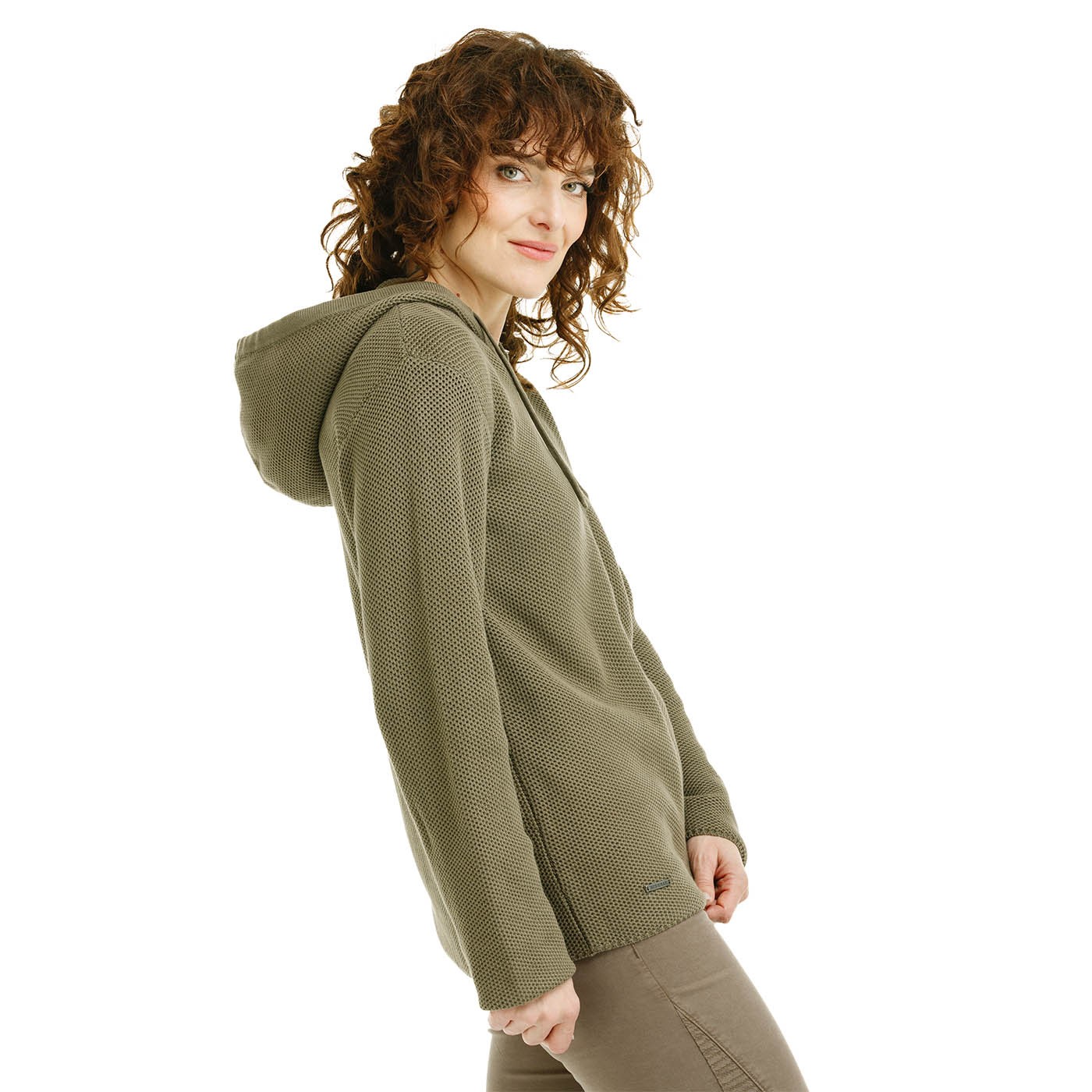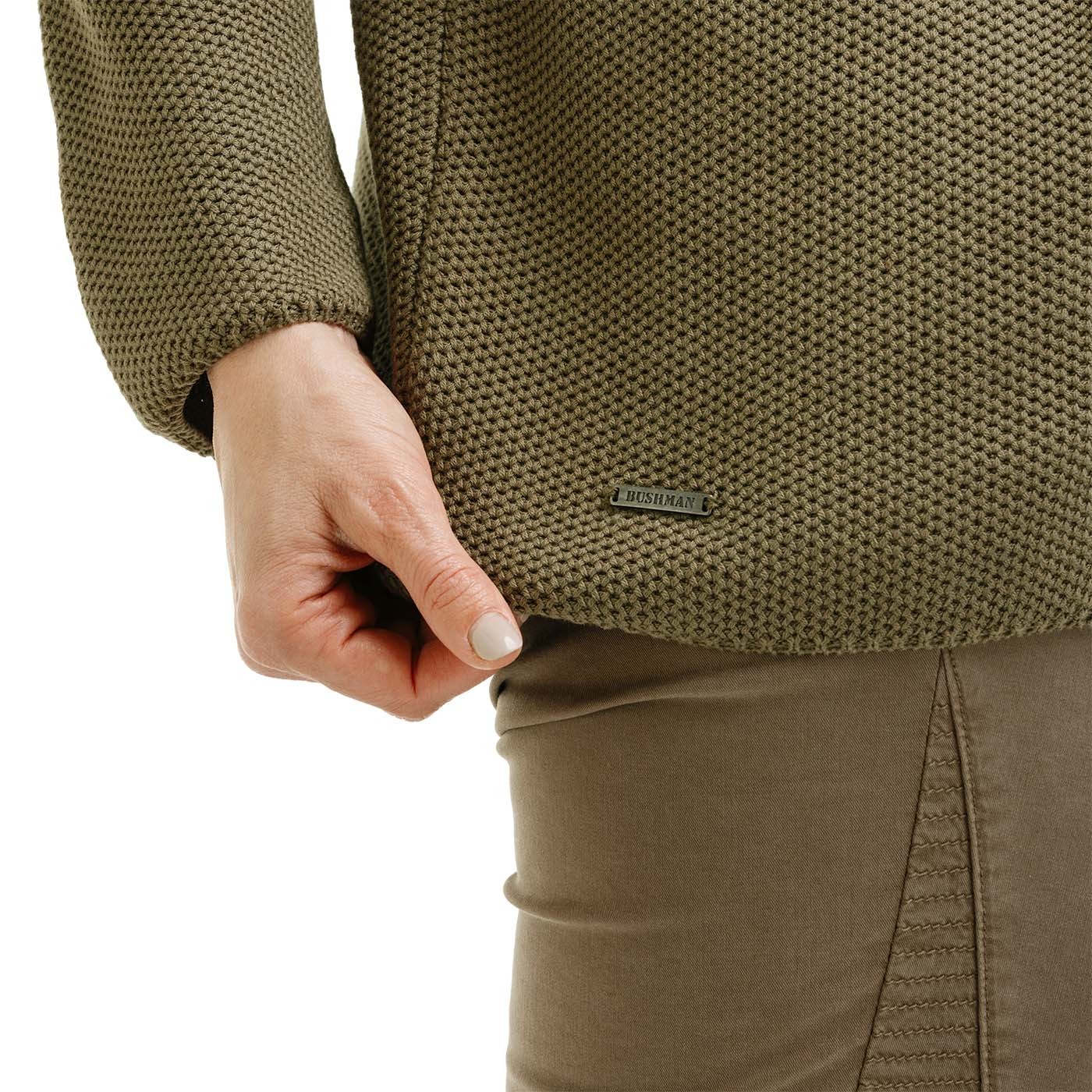 SHARI is a women's full-zipper (YKK plastic zipper) hooded sweater made of 100% cotton with a soft honeycomb texture that resembles a honeycomb and is comfortable to wear. There is also a practical hood with a drawstring. The brand label in the bottom hem only subtly reminds of the Bushman spirit. The material has undergone garment dyed (dyed after sewing) and acid wash, thanks to which the sweatshirt has a characteristic vintage look.