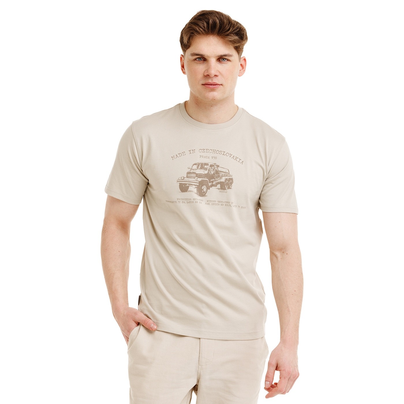 ADDO is a classic cotton T-shirt that combines comfort and style with the unique character of a limited edition. The material is soft, breathable and pleasant to the touch, the straight cut and short sleeves ensure comfort all day long. The "BOBSTOCK" print Made in Czechoslovakia is complemented by the motif of the legendary V3S, a symbol of honest engineering and indomitability. This classic doesn't bother explaining – who knows, knows! The print is a tribute to Czechoslovak technology, which has earned much respect at home and abroad.