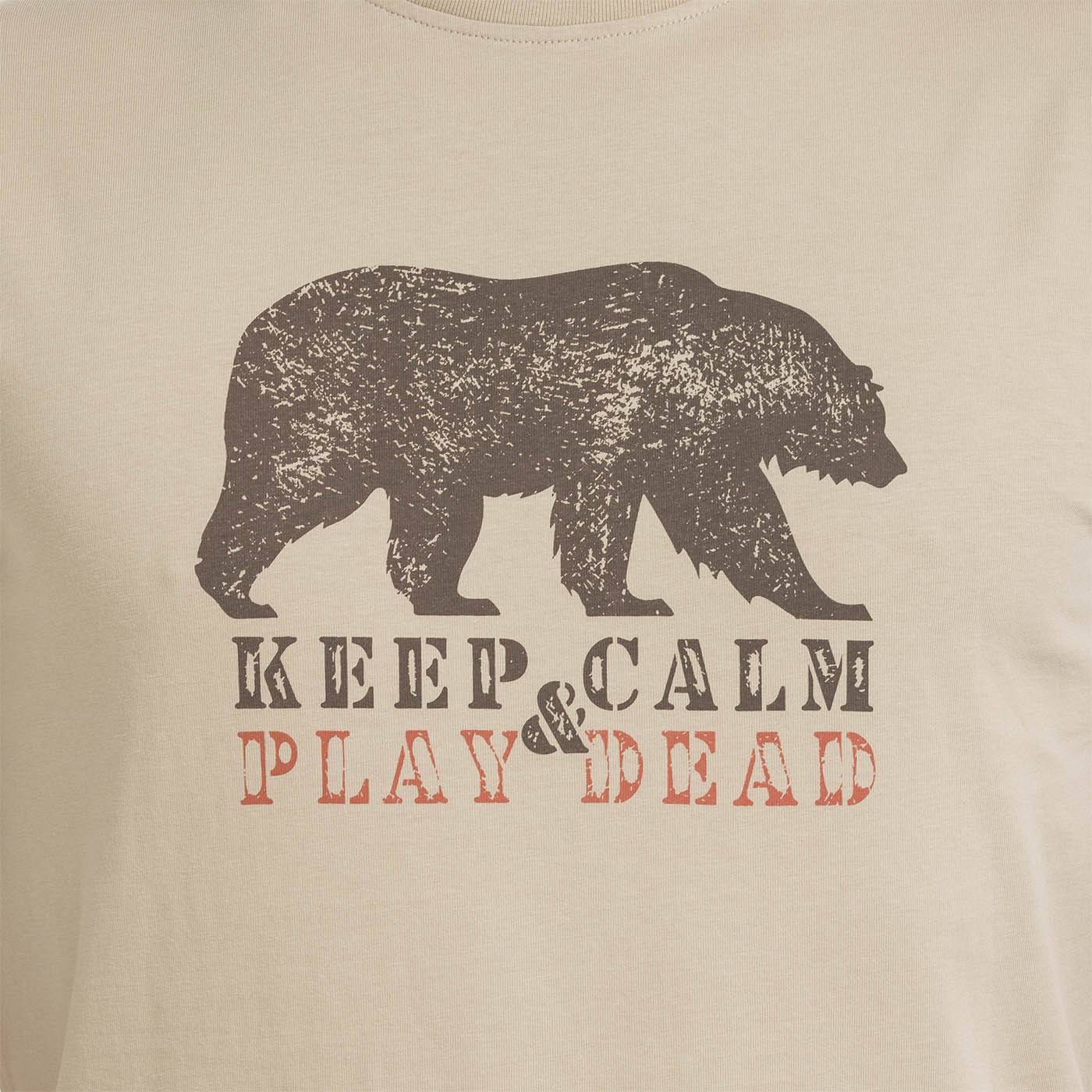 When things get heated, keep calm... and play dead. The funny print - a picture of a bear with the inscription "Keep calm and play dead" - clearly expresses your attitude. Our T-shirt made of 100% cotton, with a basic straight cut, will ensure your comfort even on those days when you want to blend in... and play dead! Specification: Weight 200g/m², softened by washing.