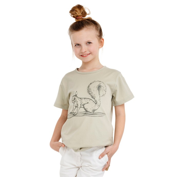 Cheerful children's T-shirt CHACO classic cut is made of high quality cotton and will delight little adventurers with new colorful prints! Blue variant with an octopus, green variant with a squirrel, terracotta shade with a train. Weight: 180 g/m2.