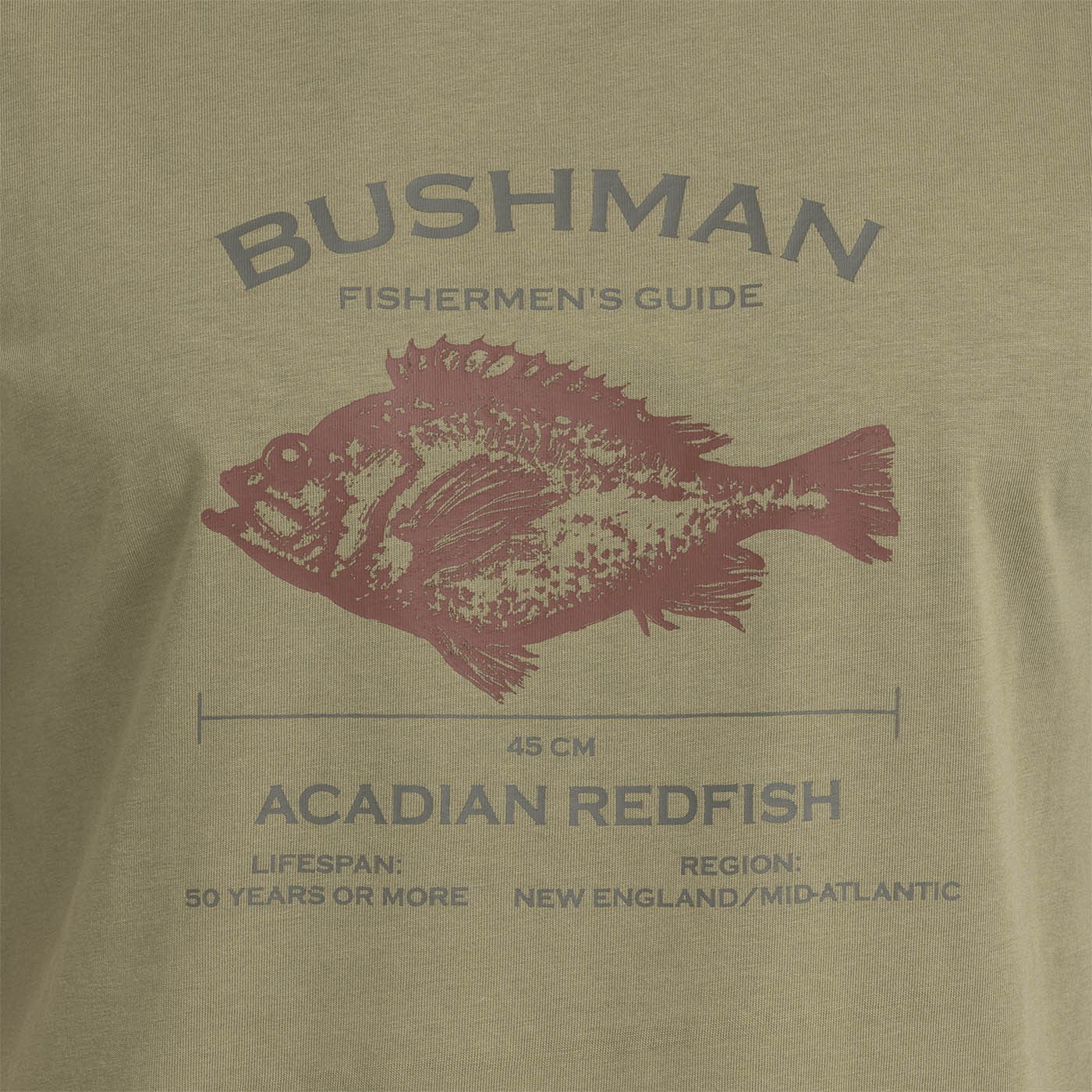 For all those who have a love of water and adventure at the fishing grounds in their blood. This Acadian Redfish "Fishermen's Guide" T-shirt is more than clothing - it's an invitation to a quest for experiencing the tranquility of being on the water. We've made this T-shirt from honest 100% cotton - single-faced knit. It has been treated with a bio polish wash, so it's pleasant to the touch and ready for any adventure. And because we know that details matter, there is also a discreet BUSHMAN print on the sleeve. Specifications: Composition: 100% cotton (single face knit), Weight: 200 g/m².