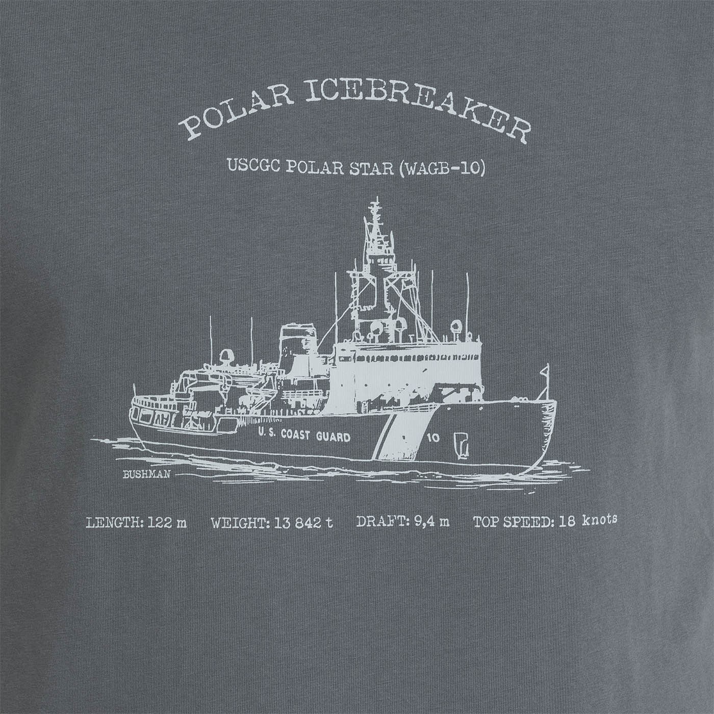 The Polar-Class Icebreaker - our Polar Star T-Shirt pays homage to one of the most durable icebreakers ever to ply the frigid seas. A technical theme with specifications (speed, performance...) will take you aboard a machine that will stop at nothing. Classic cut, 100% cotton, high-quality single-faced knit with a heavier weight of 200 g/m² - a guarantee of durability and comfort. Thanks to the bio polish wash, this T-shirt is pleasantly soft. Specification: 100% cotton, Weight: 200 g/m²