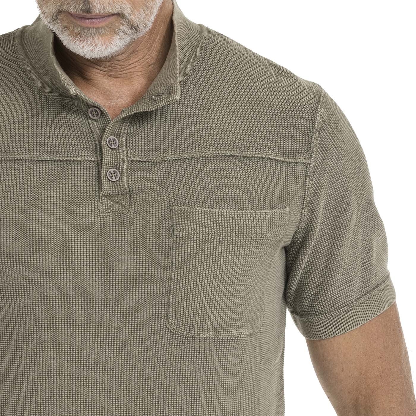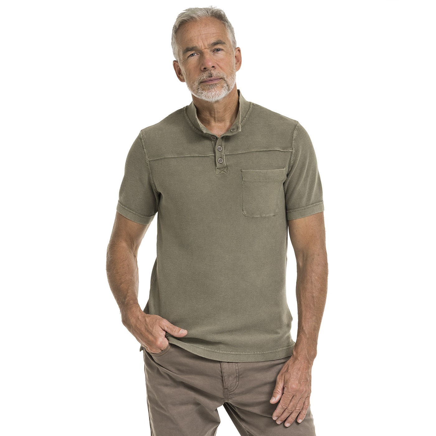 A semi-open T-shirt with an openwork weave and a collar that you can easily adjust into a stand-up one is inspired by classic sports styles. Its knitted fabric is made of fine 100% cotton, division 12 GG, offers you an unexpectedly interesting structure, and the look is further enhanced by the acid wash treatment. The fine patina, plastic pattern, breast pocket and slits on the sides make this piece an ideal T-shirt not only for tennis nostalgia. You don't play with the past. You can only look for quality in it!