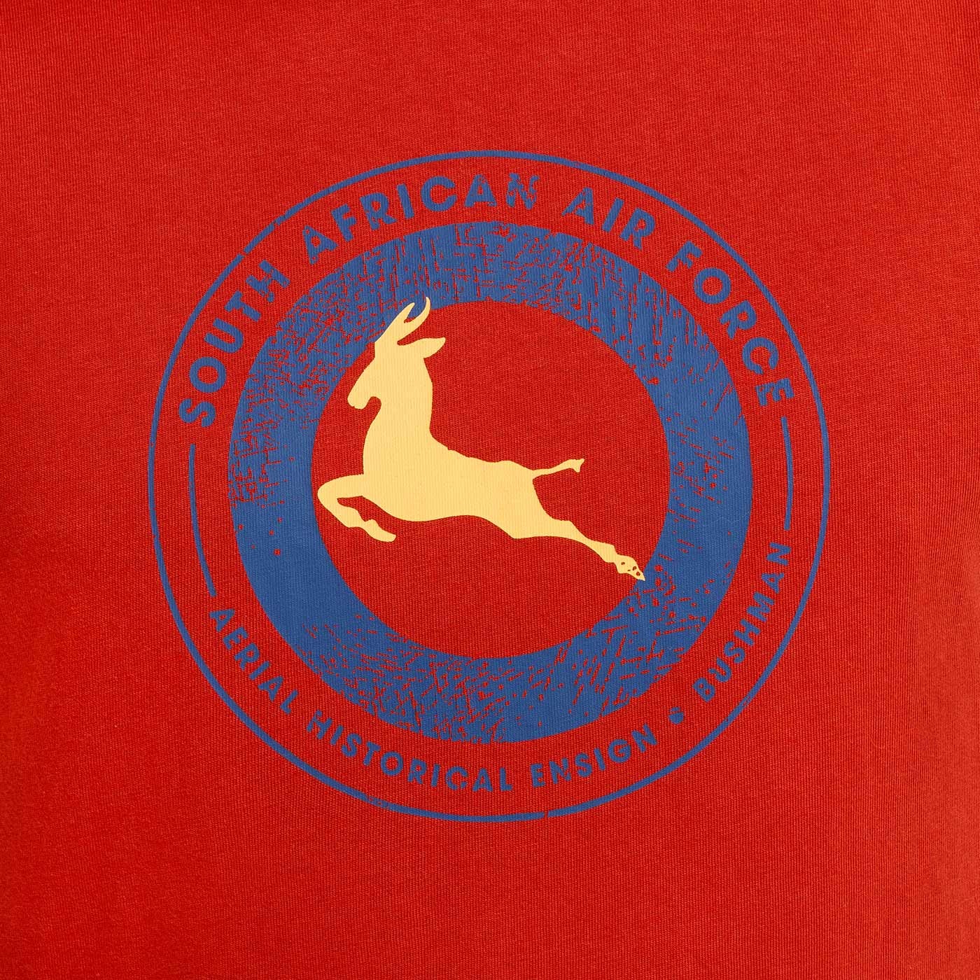 "South African Air Force" – The motif is based on the original designation of the South African Air Force aircraft – a leaping golden springbok (an antelope, which is the national symbol of South Africa) set in a blue circle. The print refers to the history of South African aviation and the symbolism of speed, movement and freedom.