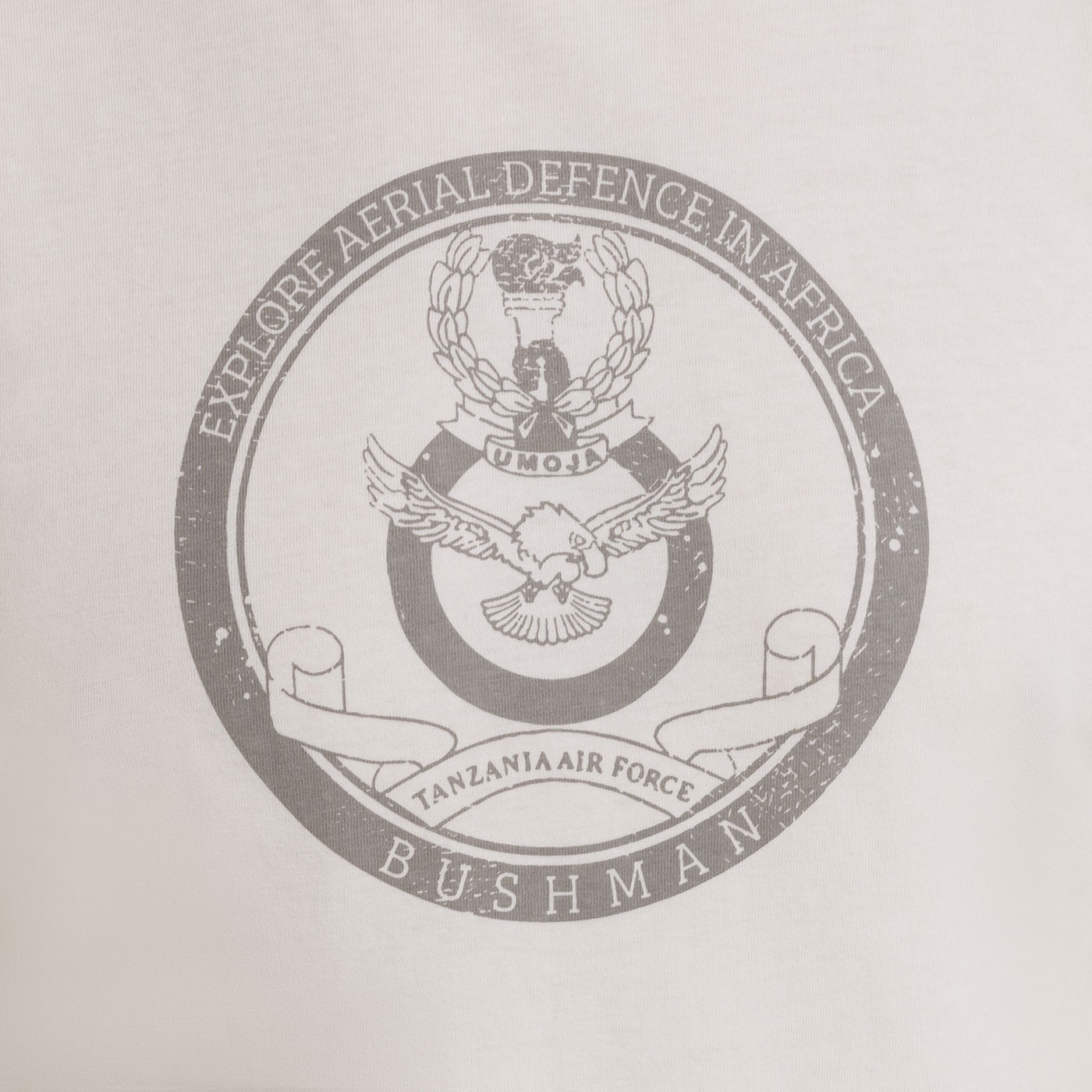 "Explore Aerial Defence in Africa" – An aerial motif inspired by the designation of aircraft of the Tanzanian Air Force. The emblem placed inside the circle complements the outer text with the free meaning of "learning about the air defense of Africa", which gives the print its original character.