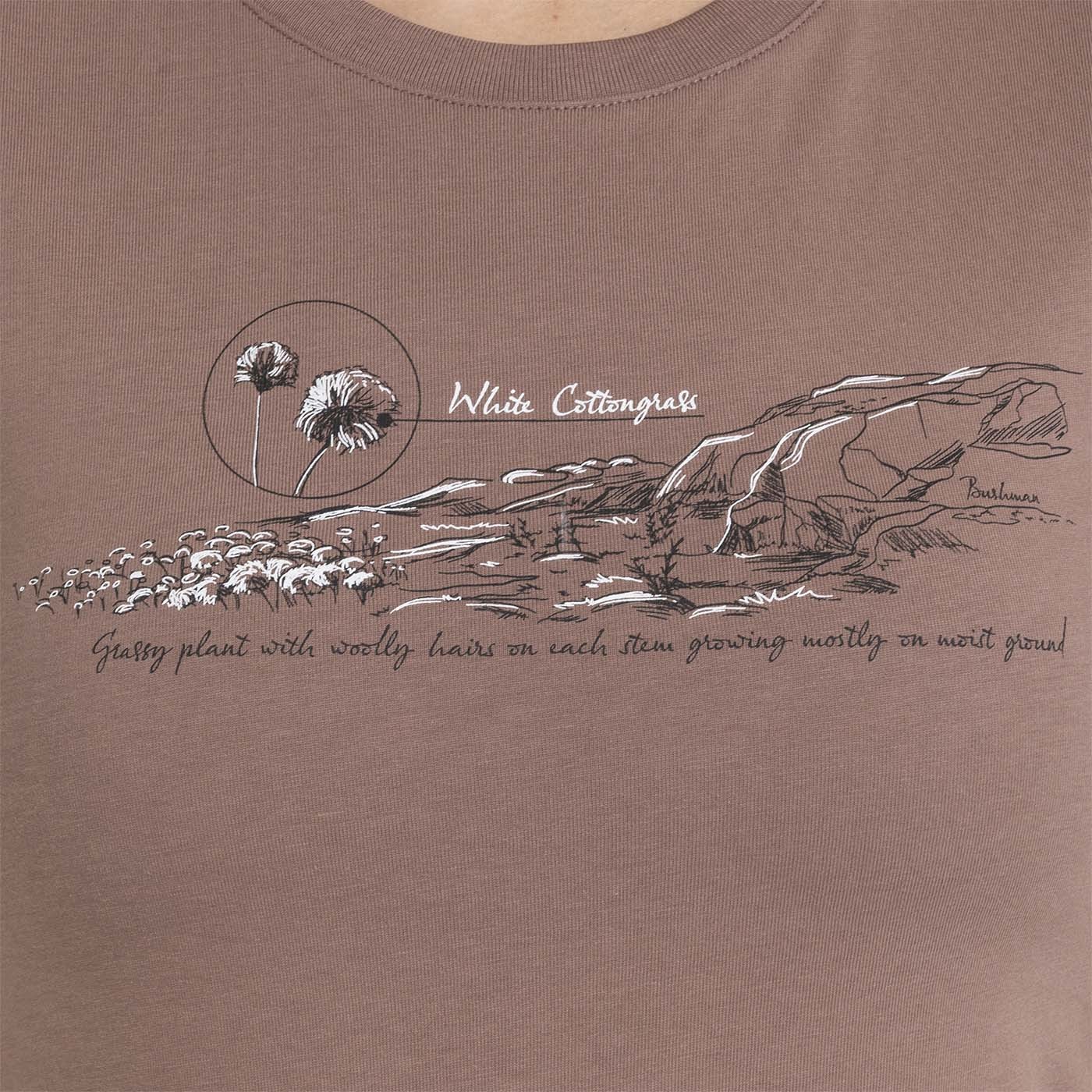 Nature has style - and so do you. Our Women's T-shirt made of pure cotton with a delicate plant motif (white cotton grass - dry grass) celebrates the beauty of wild plants that can adapt to even the harshest of conditions. Just like you. Classic cut, pleasant surface thanks to the bio polish treatment and a fair weight - for every day when you want to feel a connection with Nature. Specification: Composition: 100% cotton, Weight: 200 g/m².
