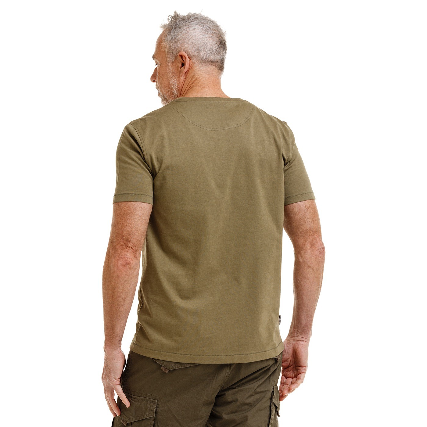 TAMAJ is a universal basic T-shirt that‘s breathable and comfortable to wear. The straight (albeit narrower) cut provides comfort all day long. The brand embroidery on the front and decorative stitching of the seams give this T-shirt its subtle details and an authentic Bushman character.