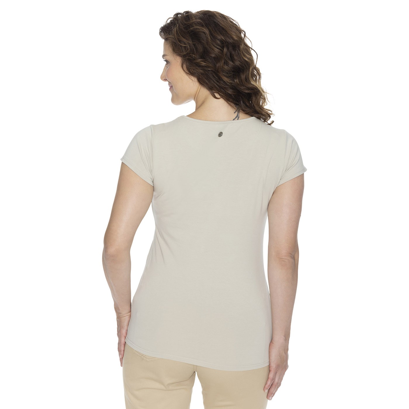 Classic cut, unique design: this is the Timea cotton T-shirt, to which we have added a little elastane for better elasticity and flexibility.