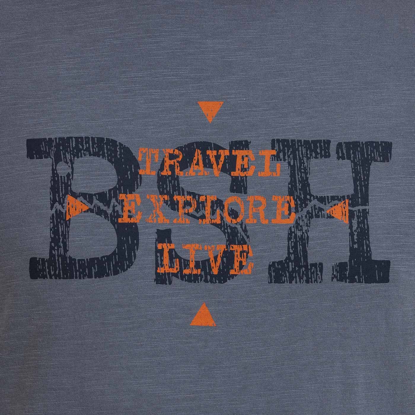 YAKUBU is a T-shirt for guys who aren‘t afraid to step out of line. The material looks lively and natural, is breathable and ensures comfort - even on warmer days. The straight cut and classic round neckline make it a versatile piece for every day, while the bold print on the chest carries a clear message: BSH – Travel, Explore, Live. The contrasting legendary "V" on the back only indicates where this attitude comes from...