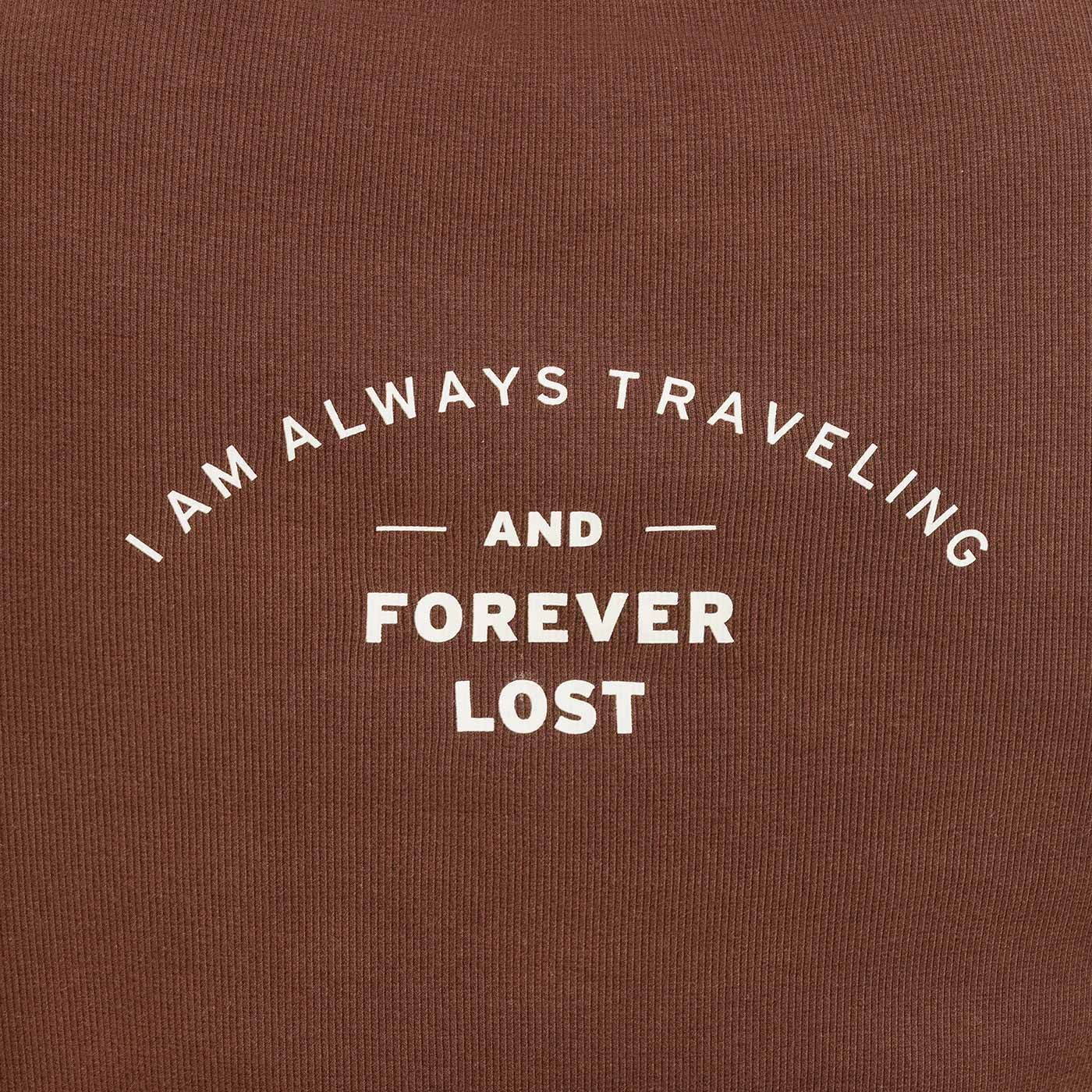 BELI is a simple but distinctive basis for a summer outfit. The ribbed material adds structure to the undershirt while ensuring that it adapts nicely to the body without feeling tight. Thanks to its elasticity, it is comfortable to wear both alone and as a base layer. The minimalist look is enlivened by a humorous print on the back "I'm always travelling and forever lost", which gives the undershirt (with a little exaggeration) the right travel vibe. BELI works equally well with shorts, skirts and under a shirt — exactly the kind of piece you'll wear again and again.