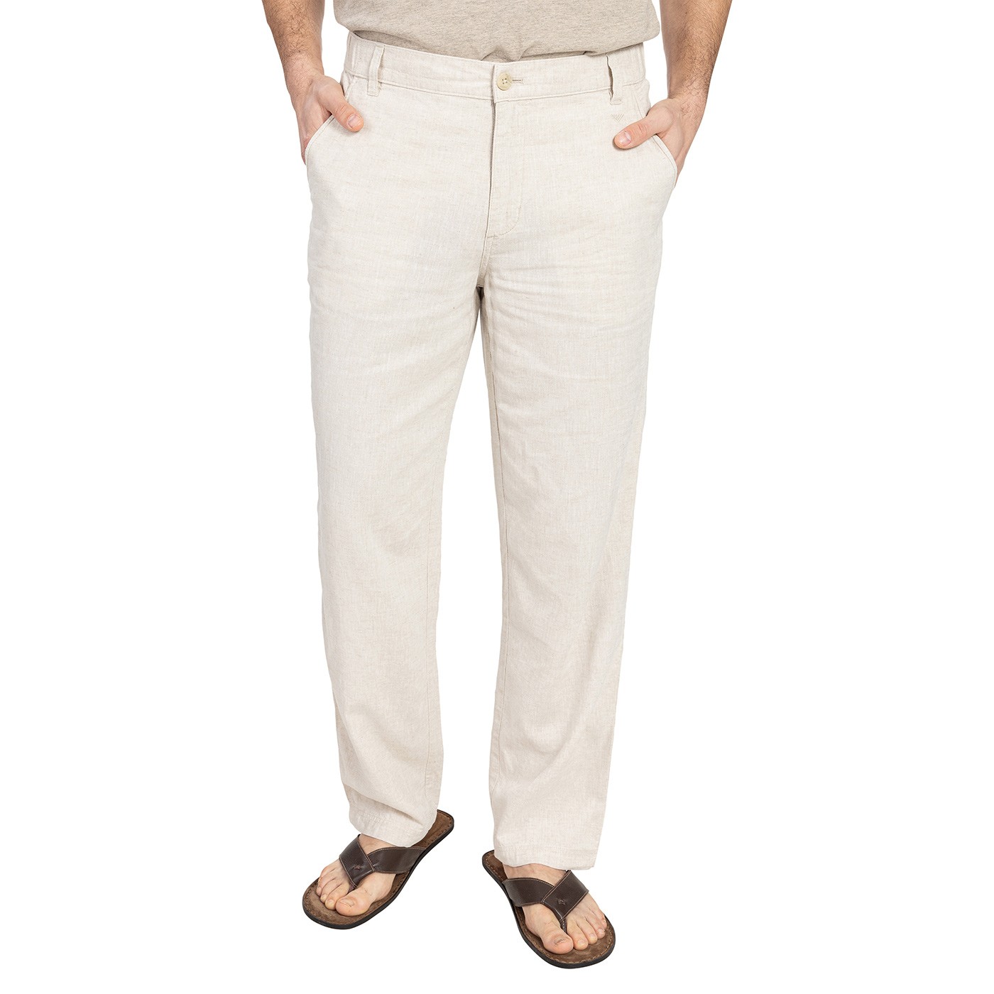 When the breathability of linen meets the softness of premium viscose, you get pants you'll want to wear wherever your travels take you. These lightweight, plain-weave chinos adapt to your pace and, thanks to the elastic waistband with drawstrings, to your proportions too ;-). Slash pockets in the front, welt pockets in the back – a practical and clean solution.