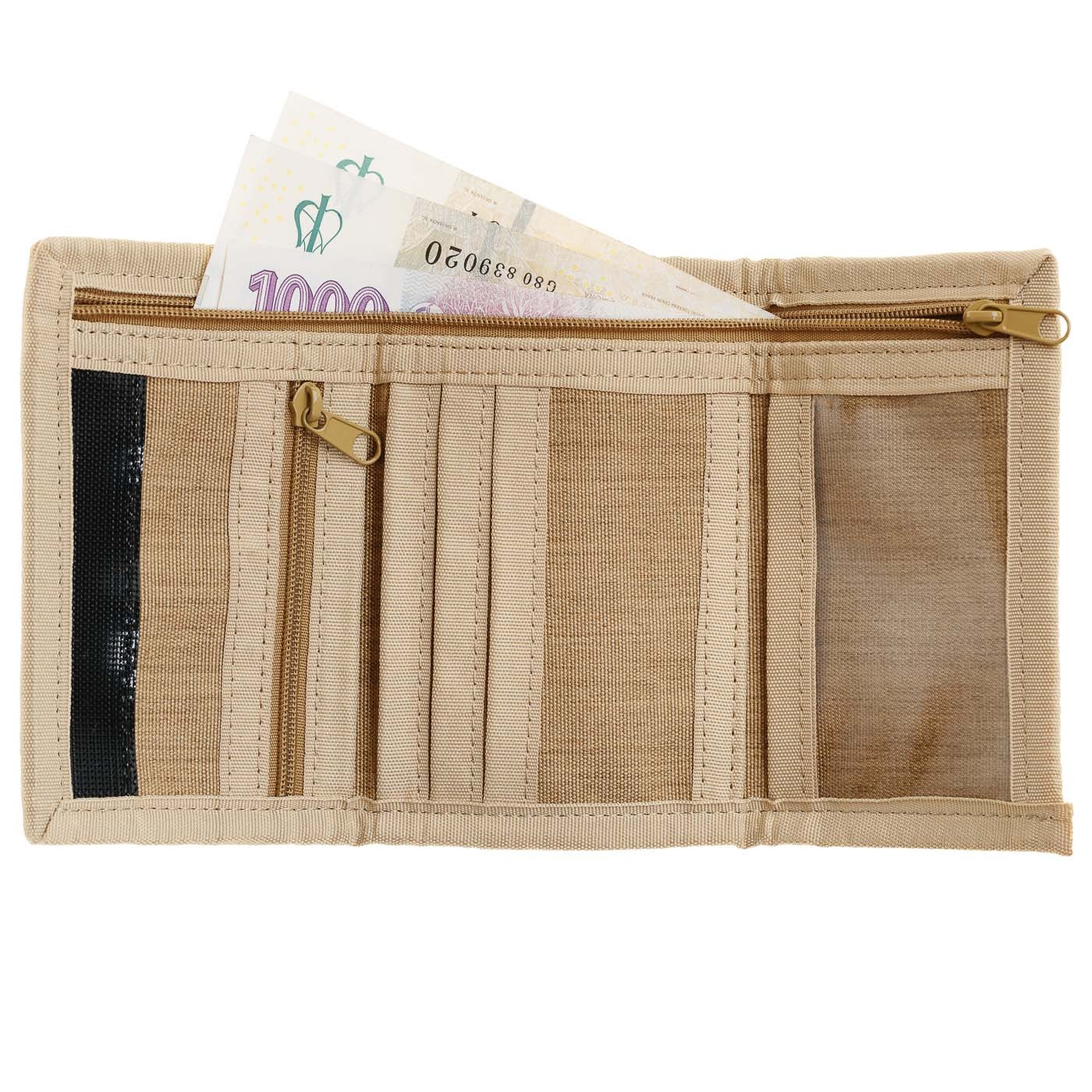 Do you remember those wallets that you simply fold twice, put in your pocket and off you go? This is exactly why the JAFARI wallet is made of 100% polyester, which is sufficiently resistant to abrasion and also maintains itself well. You’ll find a number of pockets in it, in which you can insert business cards or documents, as well as three zipped pockets - two inside and one outside. The Velcro fastening is a great innovation that will allow you to get to your money quickly.
