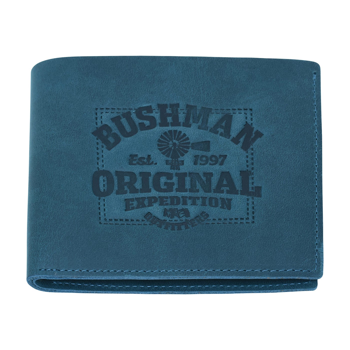 The YALA II cowhide leather wallet features card slots, a coin pocket with a snap closure embossed with the Bushman logo, and plenty of space for paper bills. The dominant feature is the dark embossed BUSHMAN est. 1997 Original Expedition Outfitters logo. It comes in a cotton drawstring bag. Dimensions: 11.5 × 9.5 × 2 cms.